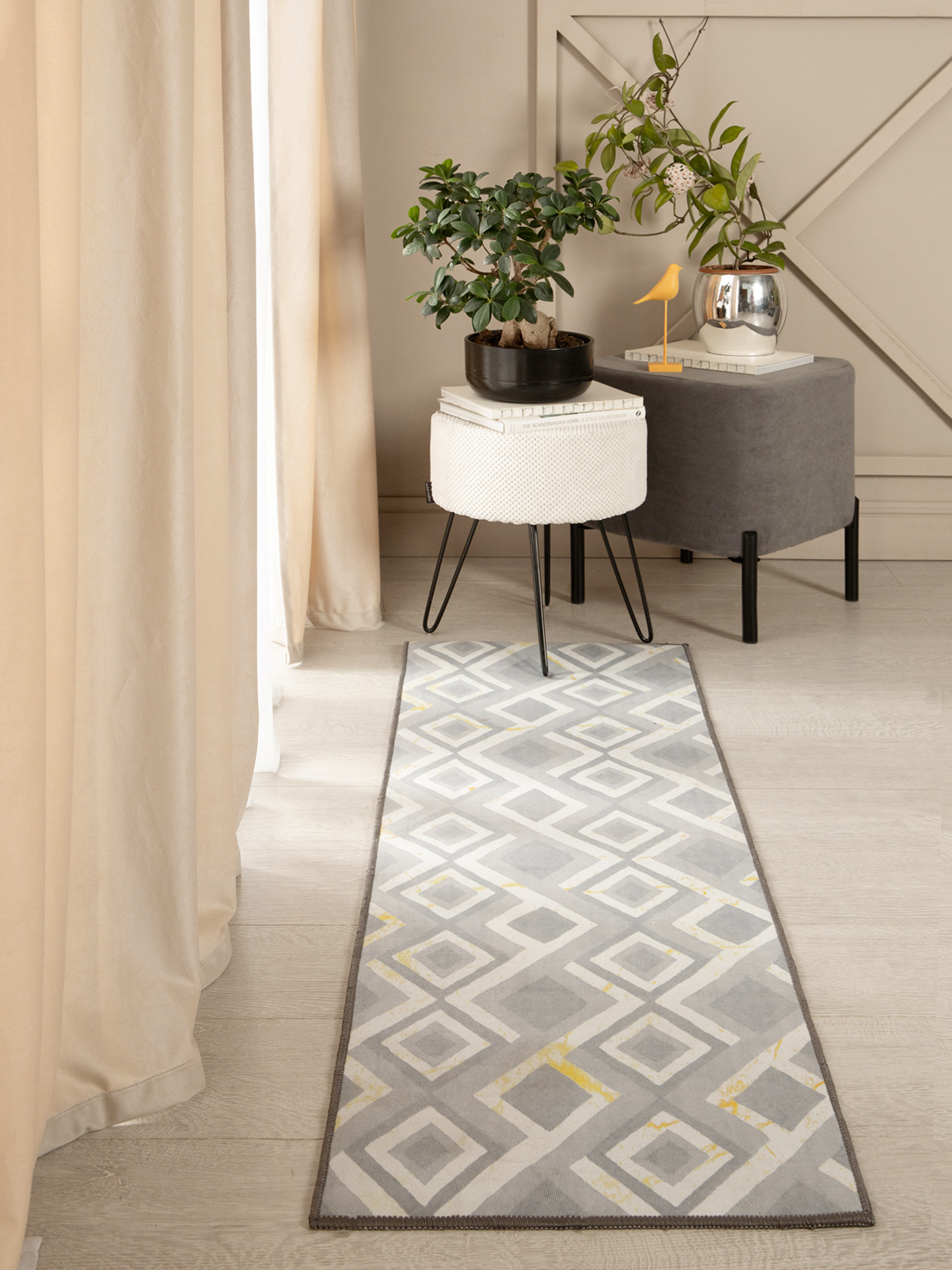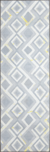 Ковровая дорожка OPTIMA GAMMA с успехом подойдет для любого жилого помещения. Изысканный белый ромб на сером фоне в необычном сочетании с брызгами шампанского поможет украсить каждый интерьер и создать уют.