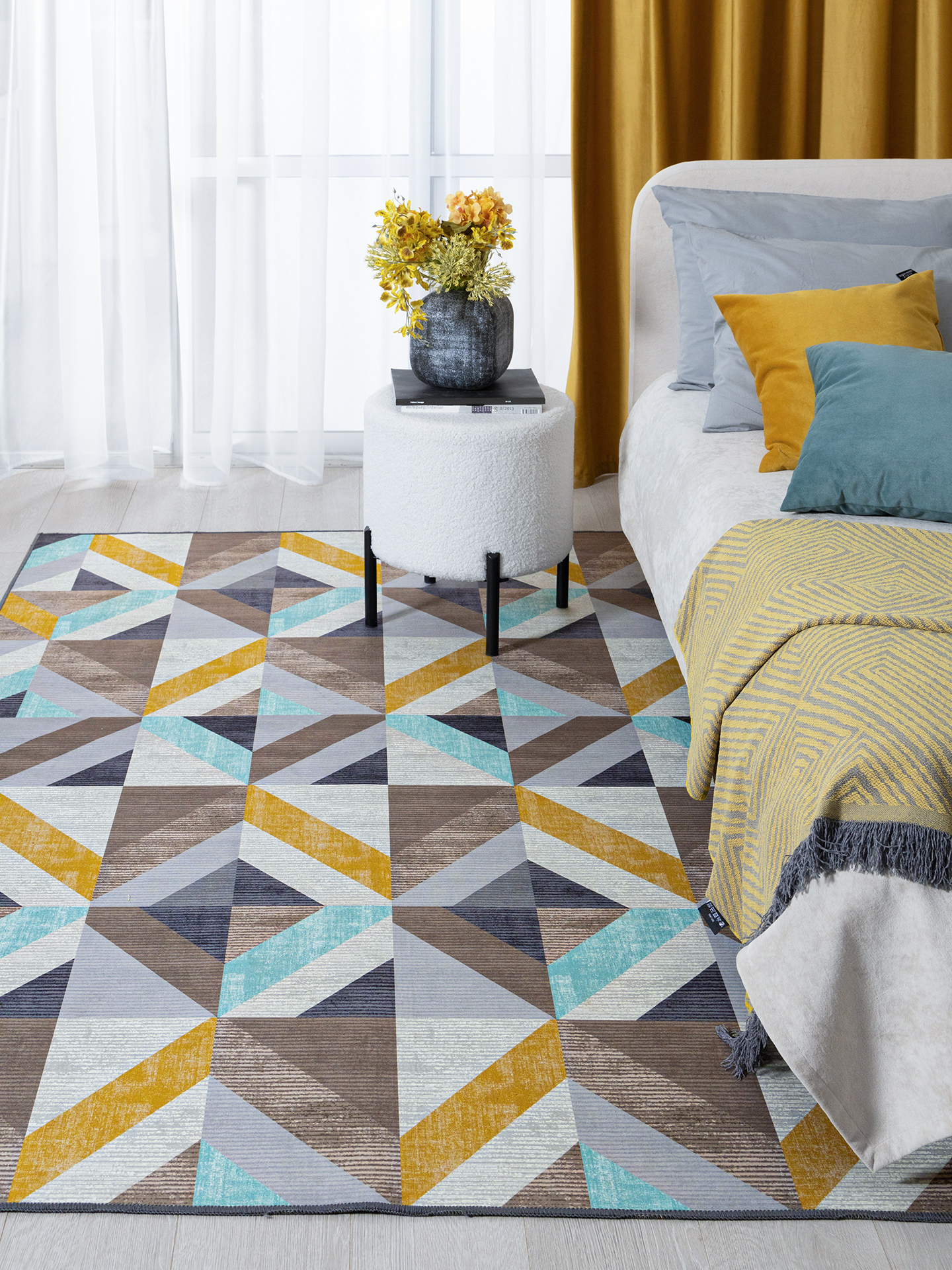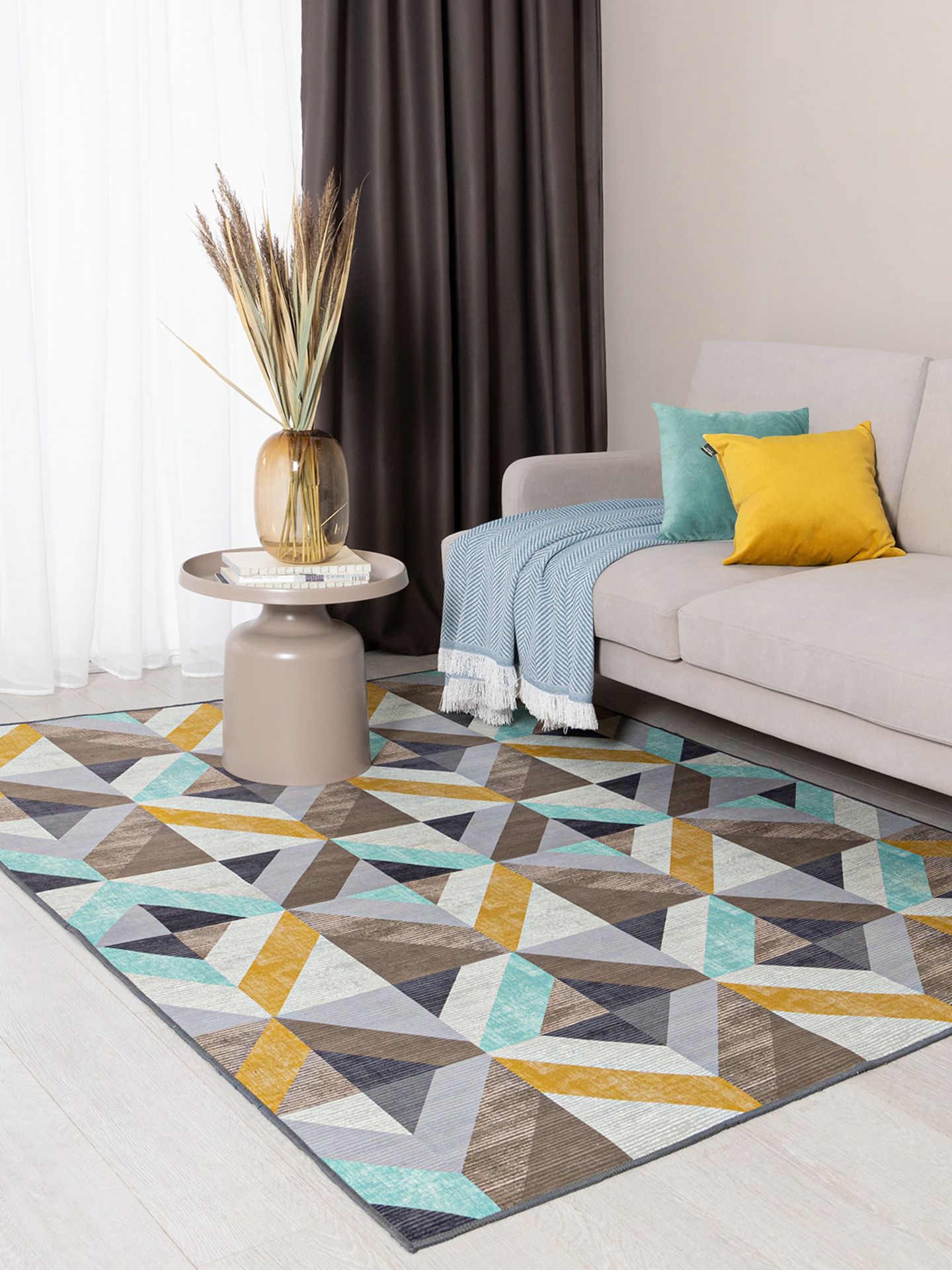 С безворсовым ковром OPTIMA MELODY пространство сразу наполнится динамикой и заиграет новыми красками. Своеобразный калейдоскоп из разноцветных плиток сделает современный интерьер оригинальным и изысканным. А благодаря сбалансированному цветовому миксу изделие будет идеально сочетаться с фурнитурой и другими элементами интерьера. Базовый коричневый, бирюза и «айвори» - просто идеальная палитра, которая надолго сохранит свою насыщенность.