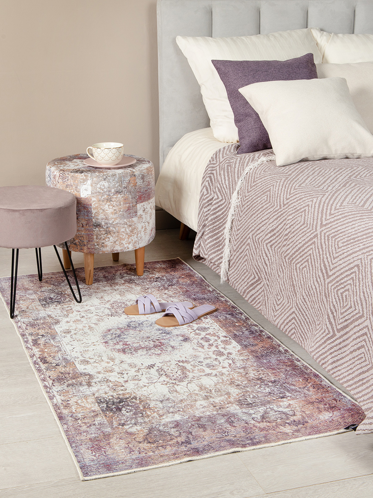 Ковер UNGARO VERDI – универсальная, вечно живая и выверенная веками классика. Идеальная симметрия сложного орнамента, акцентная кайма и изящный медальон в сочетании с нежной бархатистой поверхностью создают иллюзию дорогого шелкового ковра. Современность и особый шик ковру придают модный эффект состаренности и теплая палитра приглушенных оттенков серо-бежевого, сине-фиолетового и терракотового с вкраплениями маувно-красного.