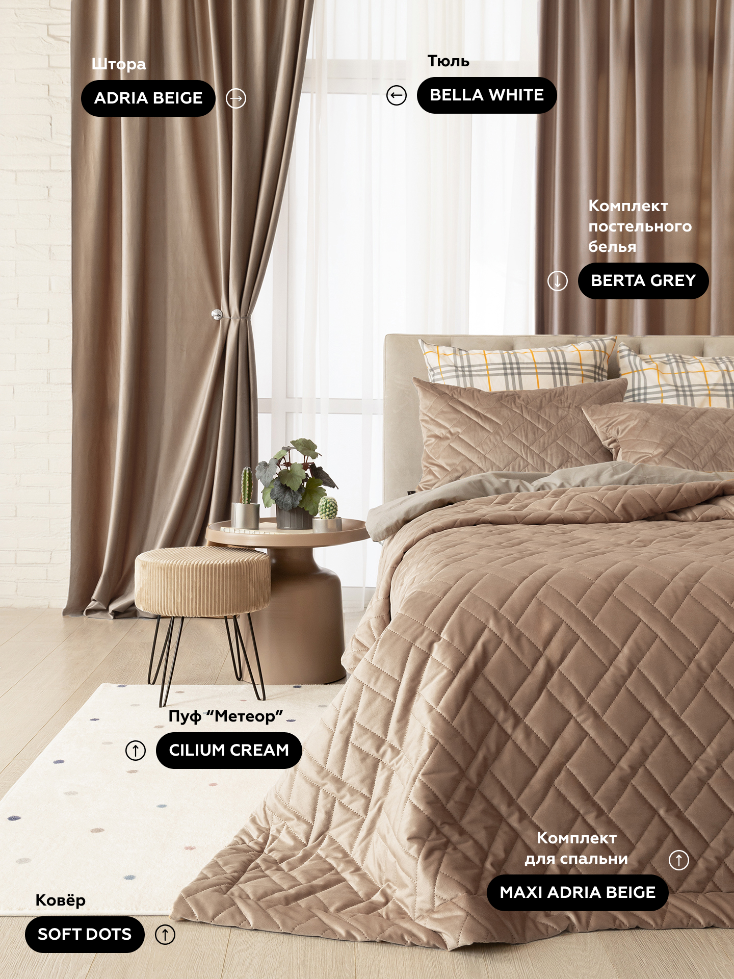 | Состав комплекта | Штора ADRIA BEIGE 150*250 (2 шт) |