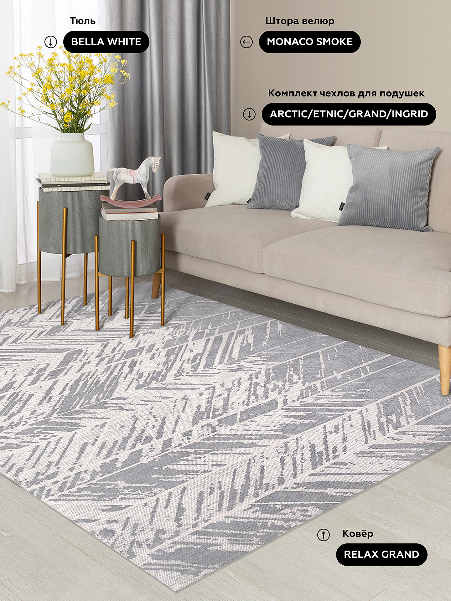 Ковер RELAX GRAND. В дизайне ковра RELAX GRAND невероятным образом геометрия сочетается с абстракцией. Оригинальность ковру добавляет интересное направление линий, в которых можно разглядеть нотки популярного в наши дни растительного орнамента. Ненавязчивые и в тоже время современные оттенки позволяют ковру уверенно себя чувствовать практически в любом современном интерьере, придавая ему утонченности и оригинальности.
