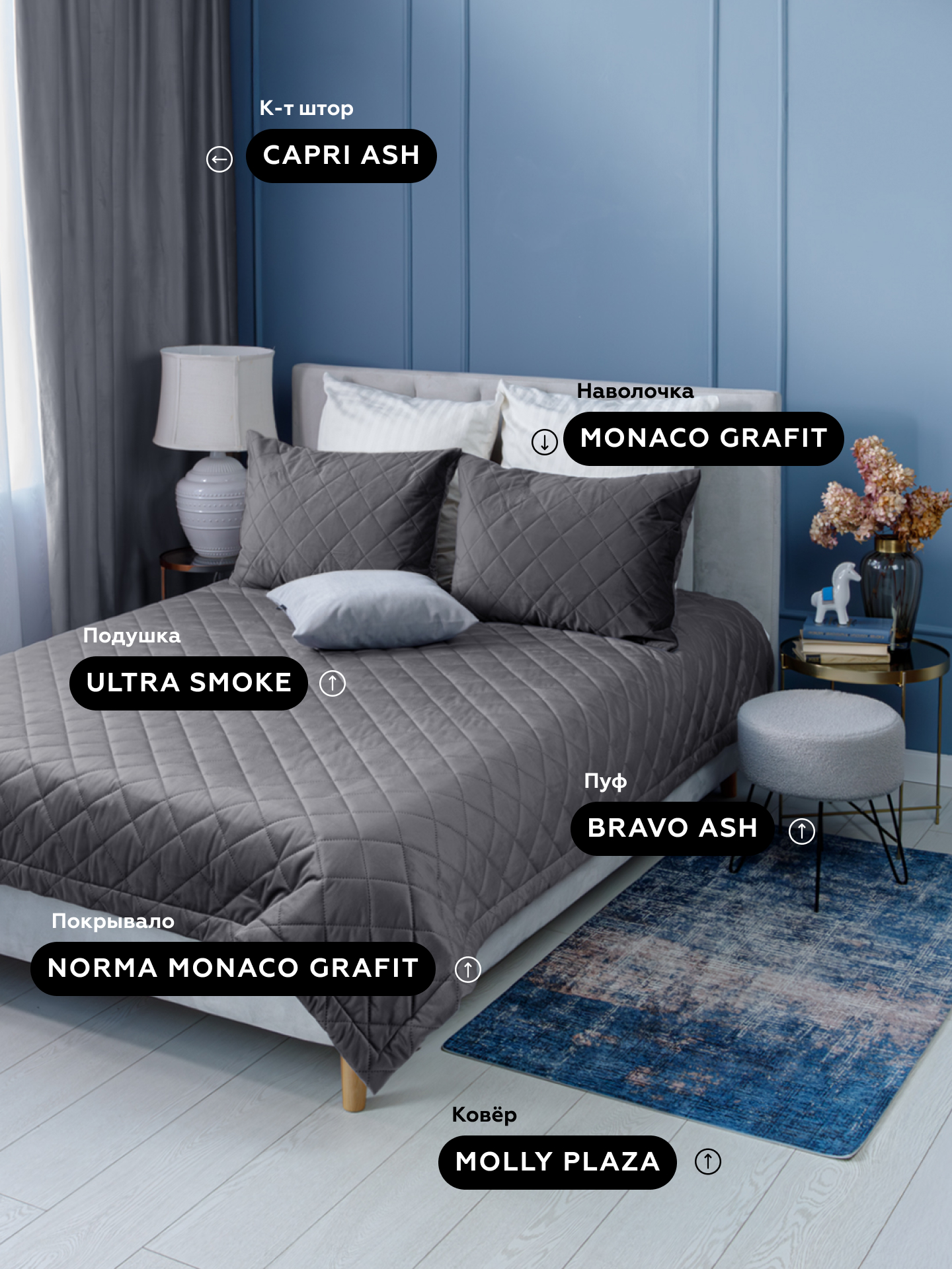 Покрывало NORMA MONACO GRAFIT 200*220